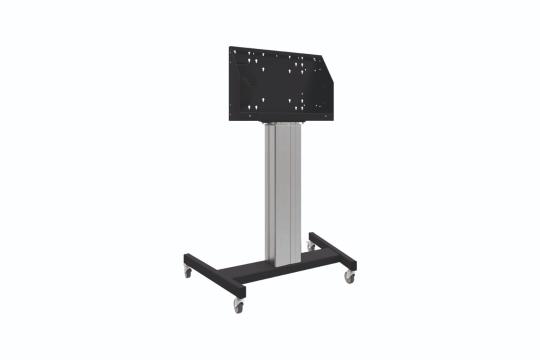 XL тележка на колесах для широкоформатных (сенсорных) дисплеев с дагональю 65'' - 86''. Регулировка высоты 600 мм, 1290 - 1890 мм. Максимальная нагрузка 120 кг. VESA maximum 800 x 600 мм. Крепление оснащено встроенным кронштейном с наиболее распространенными схемами VESA. Особенностью этого кронштейна VESA является то, что он также может служить держателем ПК на задней панели. В комплект входит набор переходников MD 052B7288.